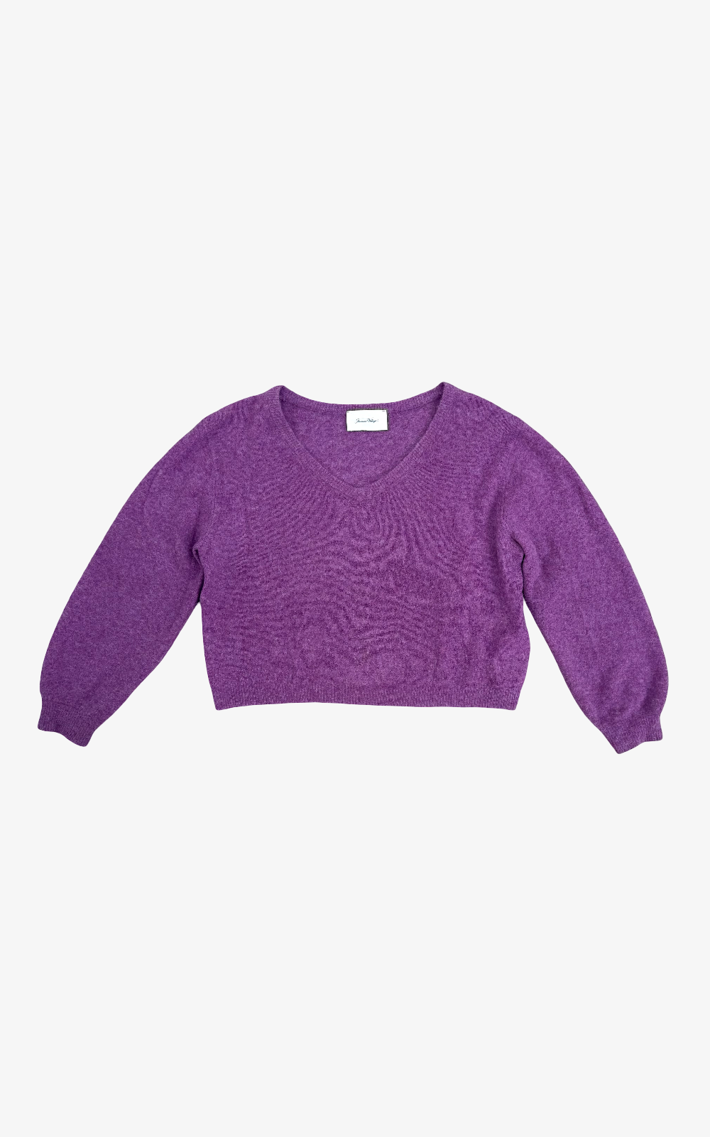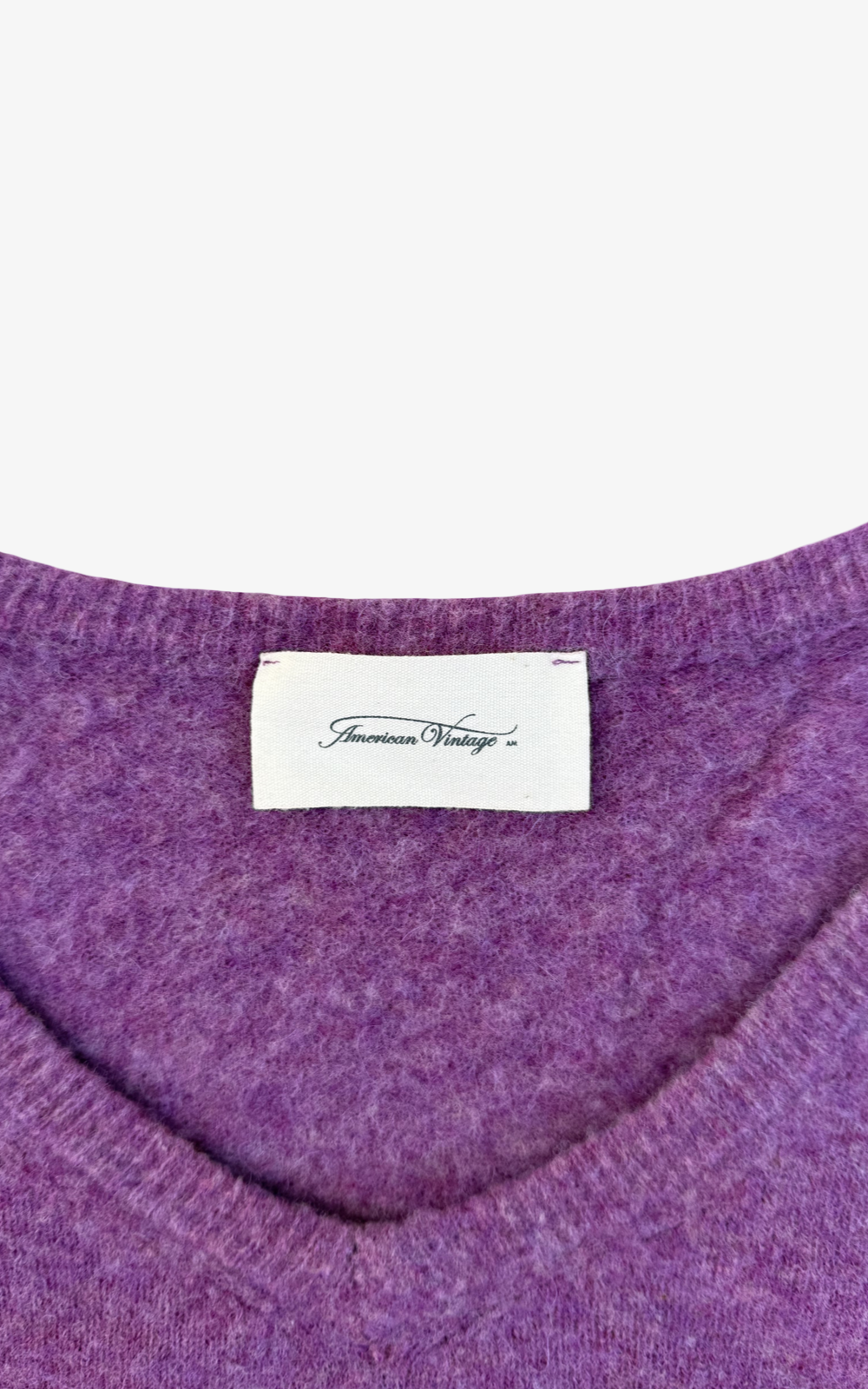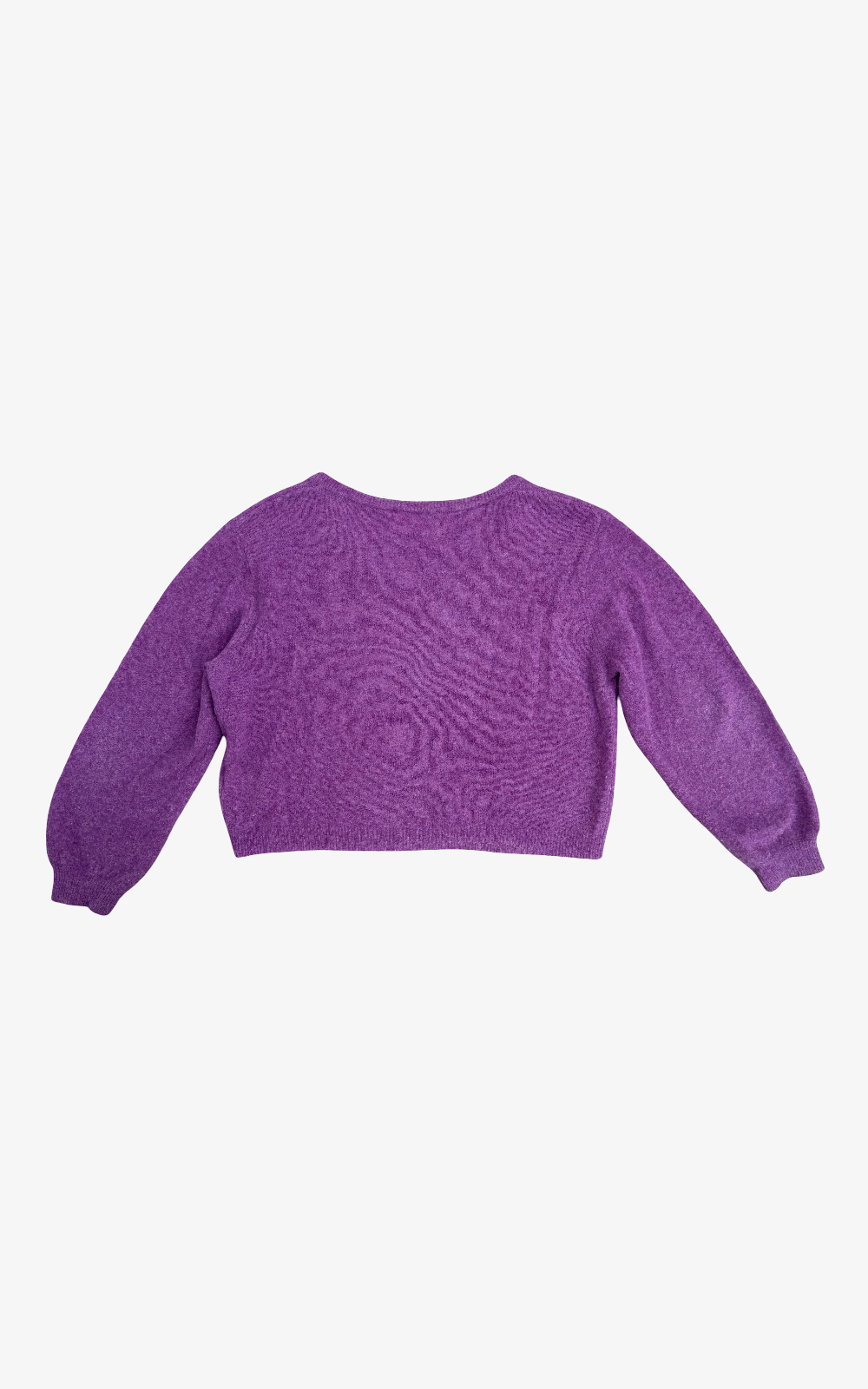 Jersey de punto en color lila intenso. Confeccionado en tejido de tacto suave con acabado esponjoso. Diseño con escote en pico, manga larga ligeramente abullonada y puños acanalados. Corte recto con bajo ajustado.