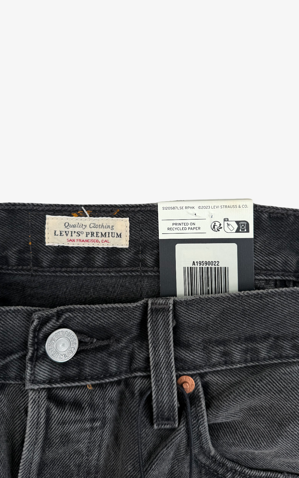 Pantalón denim negro con lavado desgastado y corte recto. Diseño clásico de cinco bolsillos y cierre frontal con botón y cremallera. Un básico versátil con el inconfundible ajuste y durabilidad de Levi’s.