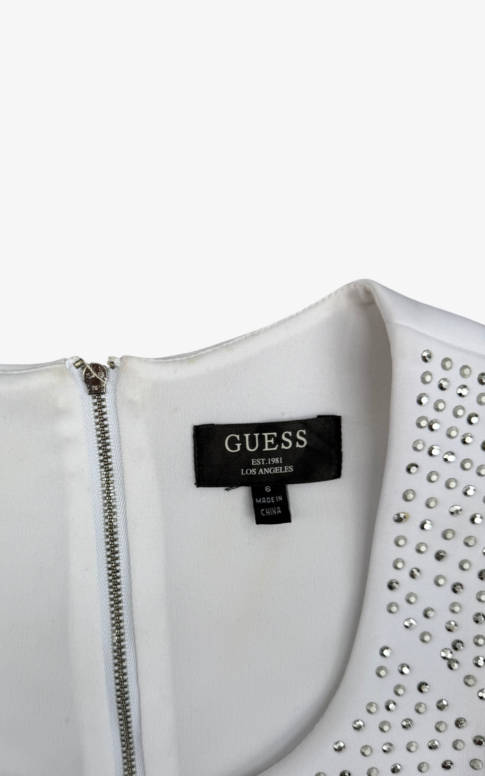 Vestido blanco ajustado con apliques metálicos Guess 6