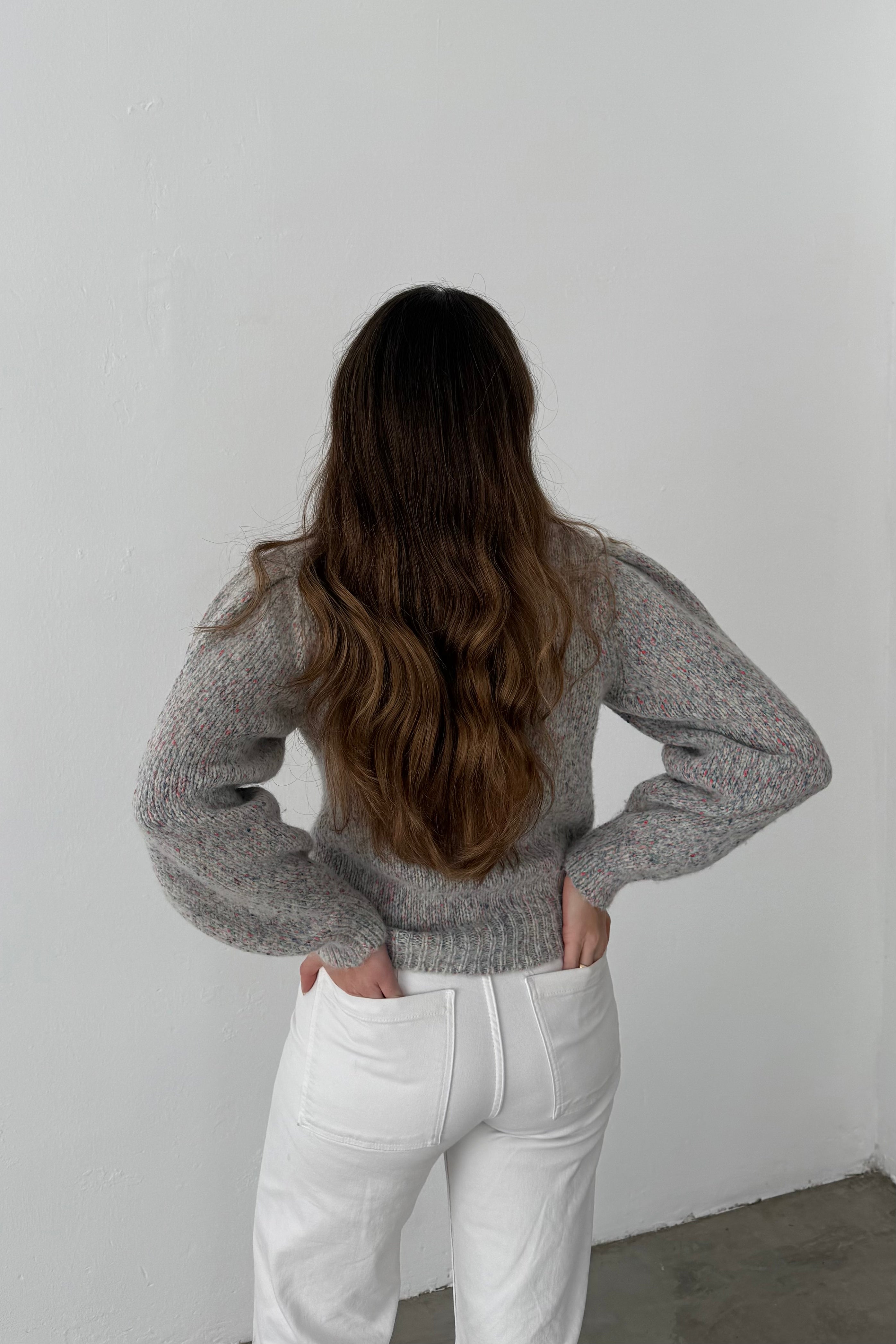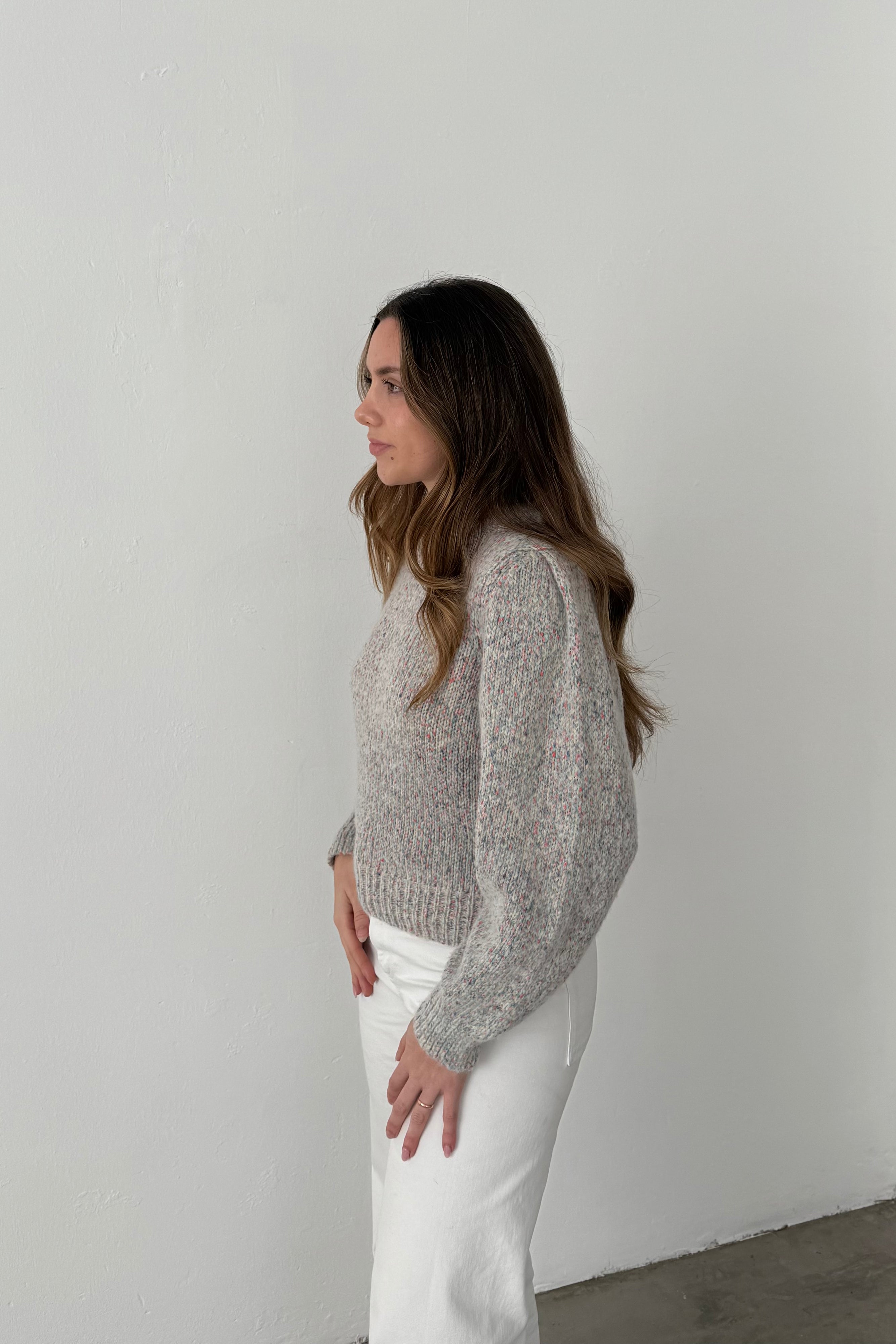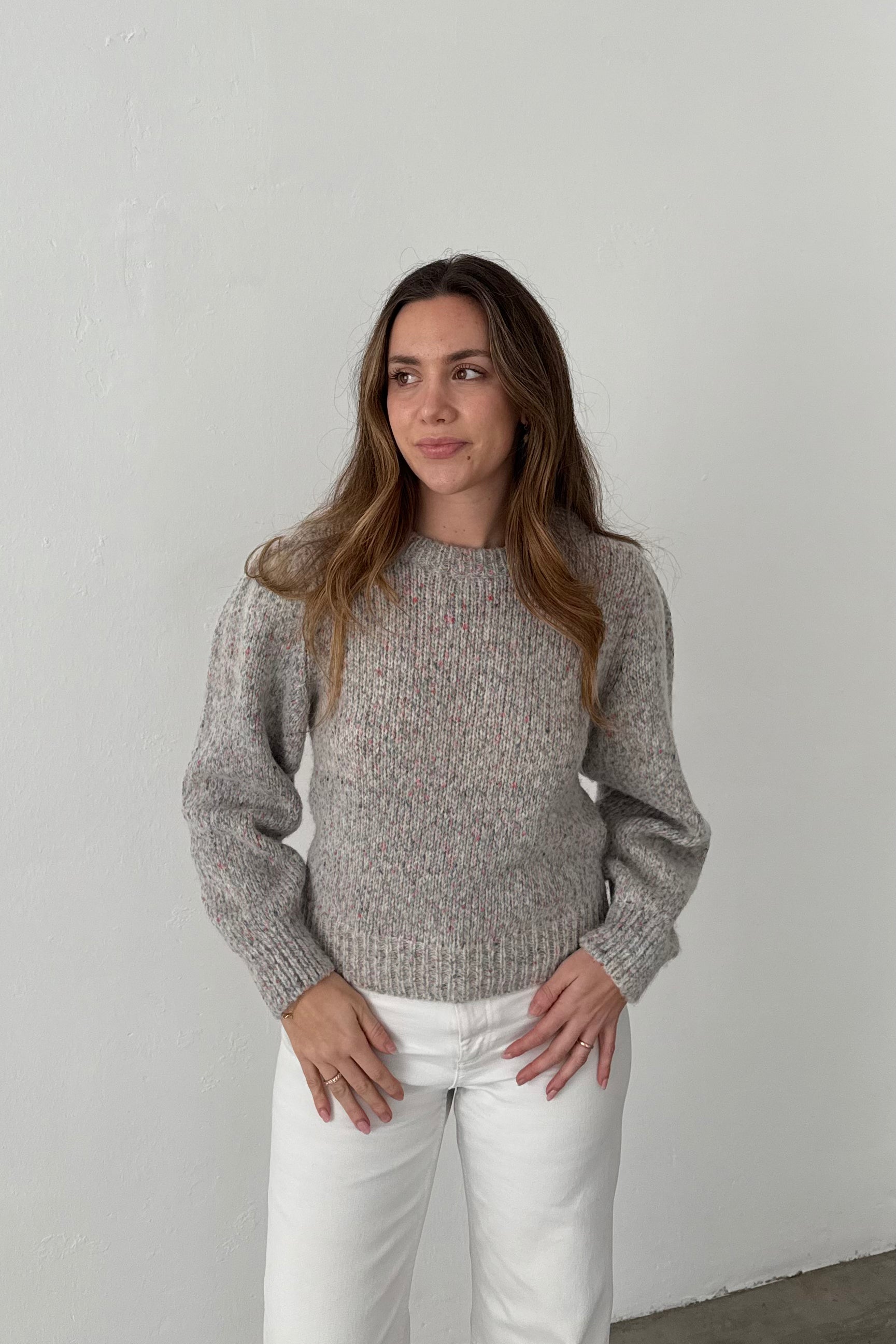 Bellerose sweater in speckled grey with multicolour yarns.