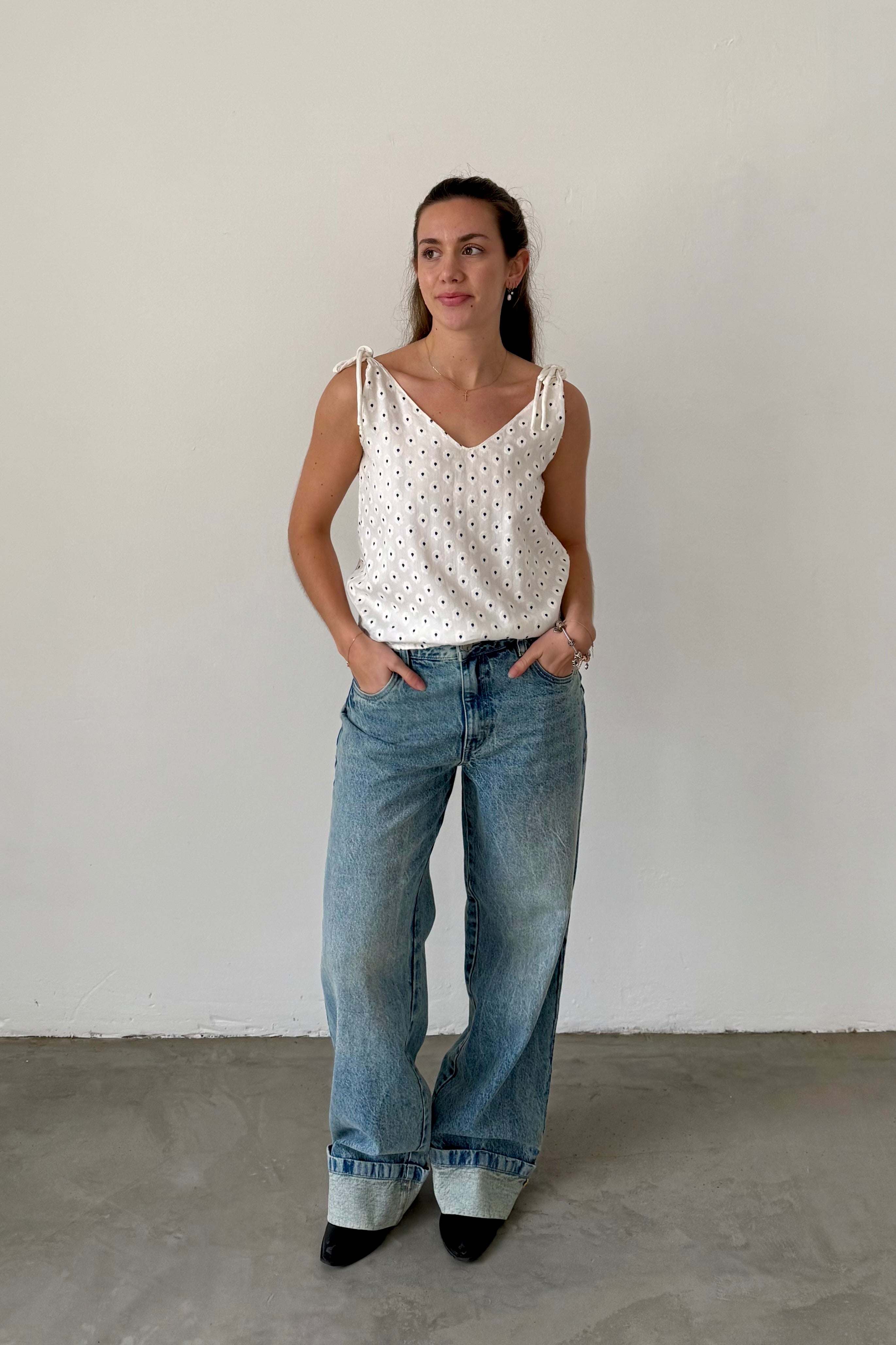 Wide-leg cropped jeans with a relaxed, modern silhouette. An effortless denim essential.